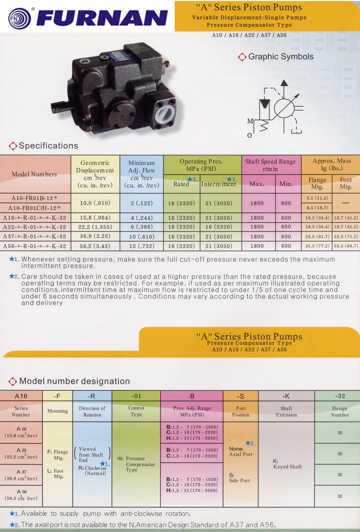 NO.: A系列(YUKEN型) Class: Variable Displacement Piston Pump